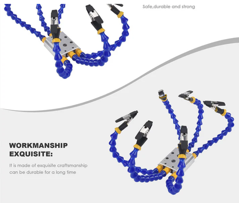 HEAT-RESISTANT & CORROSION-RESISTANT: The flexible arms and clips are made from heat-resistant materials, ensuring safe usage during soldering. Additionally, the corrosion-resistant design guarantees longevity,even with frequent exposure to flux and chemicals.
