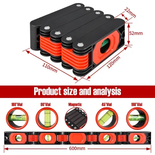 360-Degree Folding Multi-Function Magnetic Level with Five-Section Folding Ruler