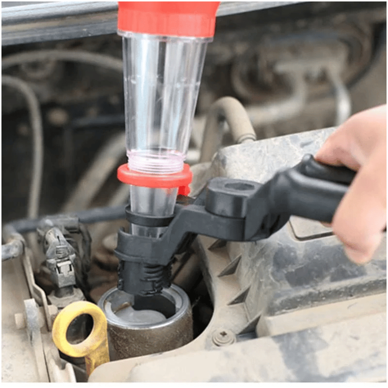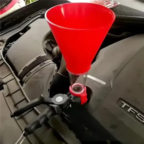 THE NYLON CLIP:It can attach directly to the oil filter neck. Its size can adjust to fit different neck sizes. A fixing ring on the clip ensures a sturdy connection to the funnel during use.